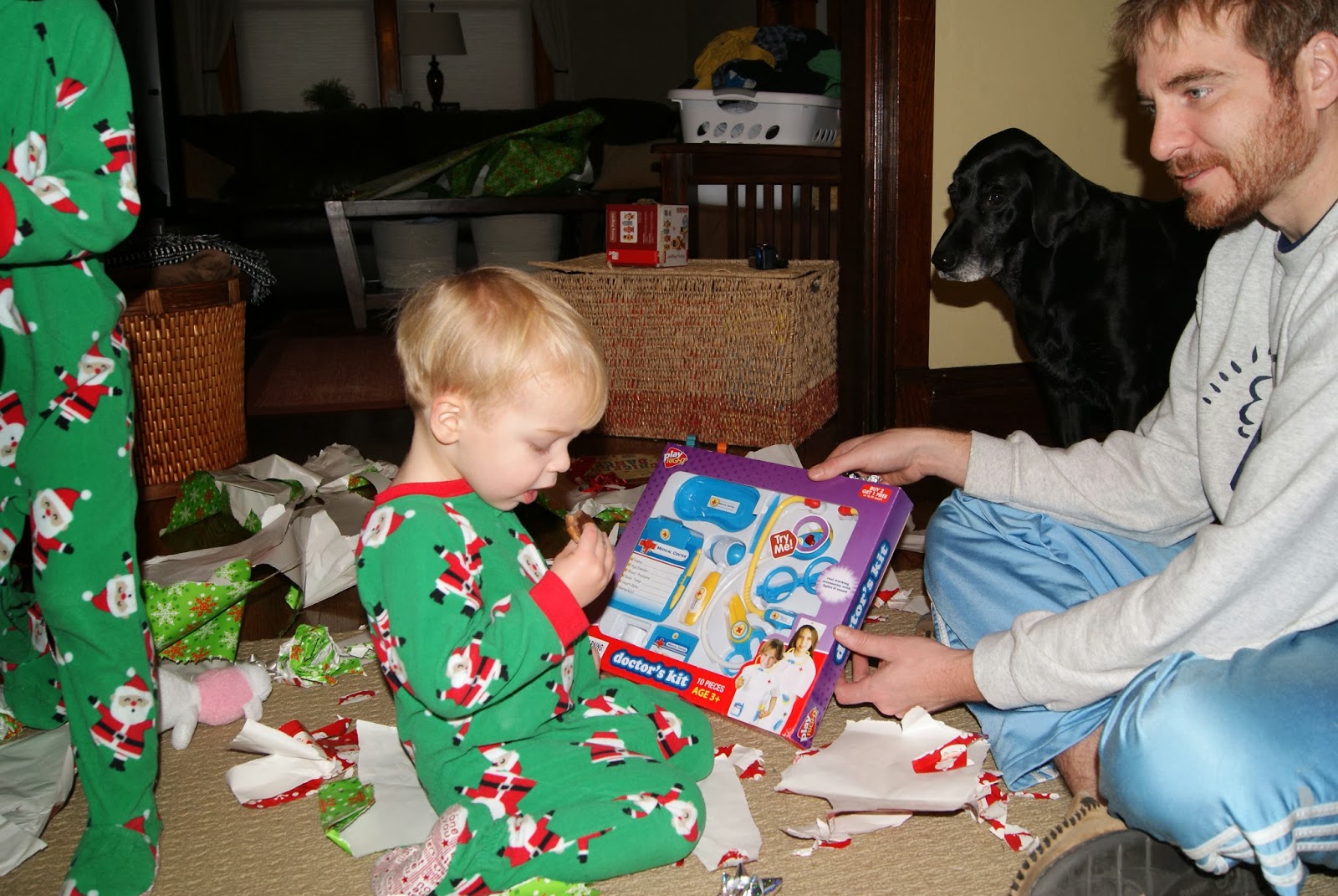 Judging from the carrot scraps, apparently the reindeer were in our house or Santa is a liar and ate the carrots himself. Upon seeing this in the morning Henry said, "I WANT those crumbs!" We know buddy, we know. |
